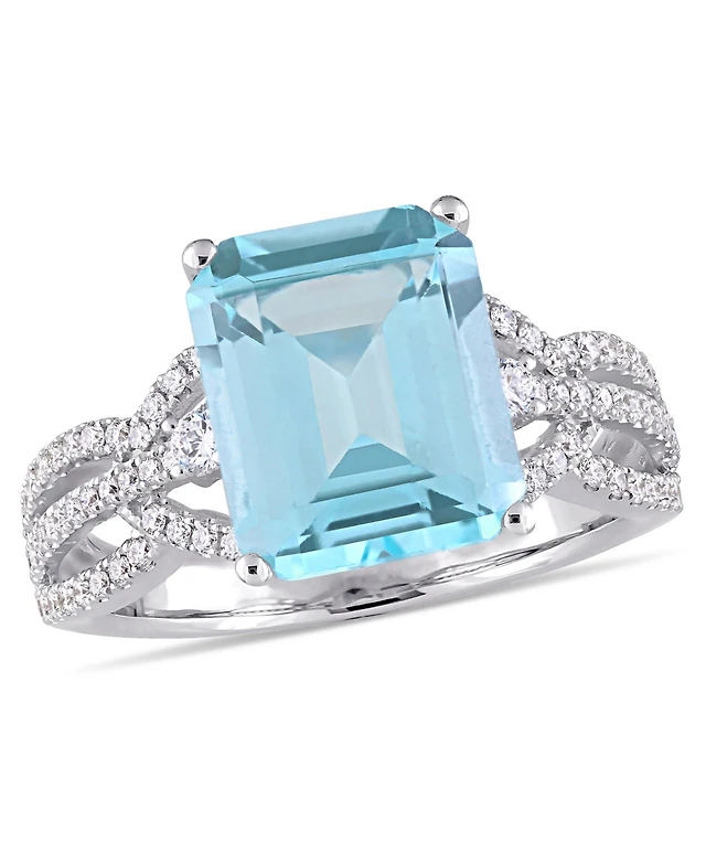 Suzy Levian Sterling Silver Asscher Cut Cubic Zirconia Aquamarine Engagement Ring