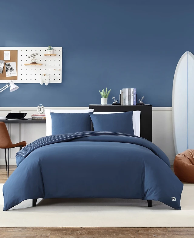 Linery Co. Navy Nautical Pattern Microfiber Quilt Set With Shams