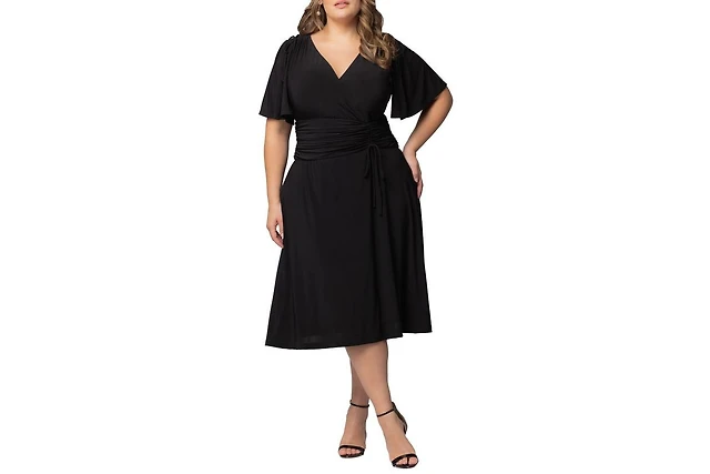 Eloquii Women's Plus Size Shirred Strong Shoulder Tie Detail Dress