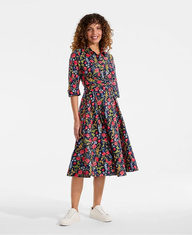 Dkny Women's Long-Sleeve Collared Neck Midi Shirtdress