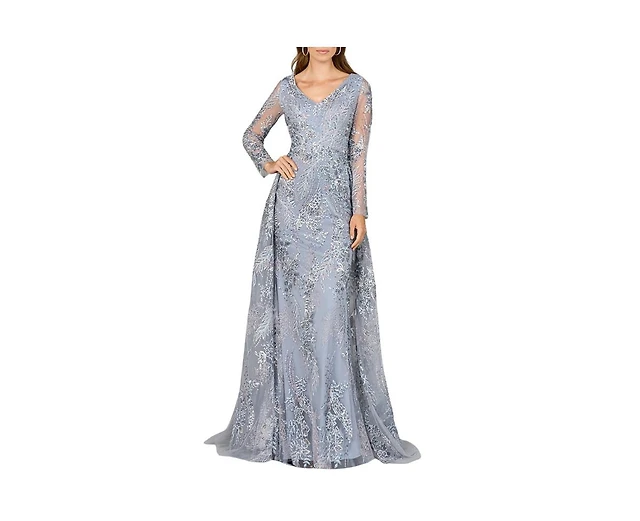 Lara Women's Long Sleeve Sheath Gown with Silver Beads