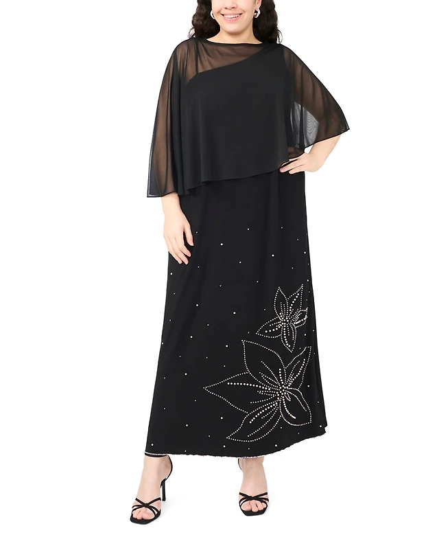 Jessica Howard Plus Flutter-Sleeve Shirred Dress