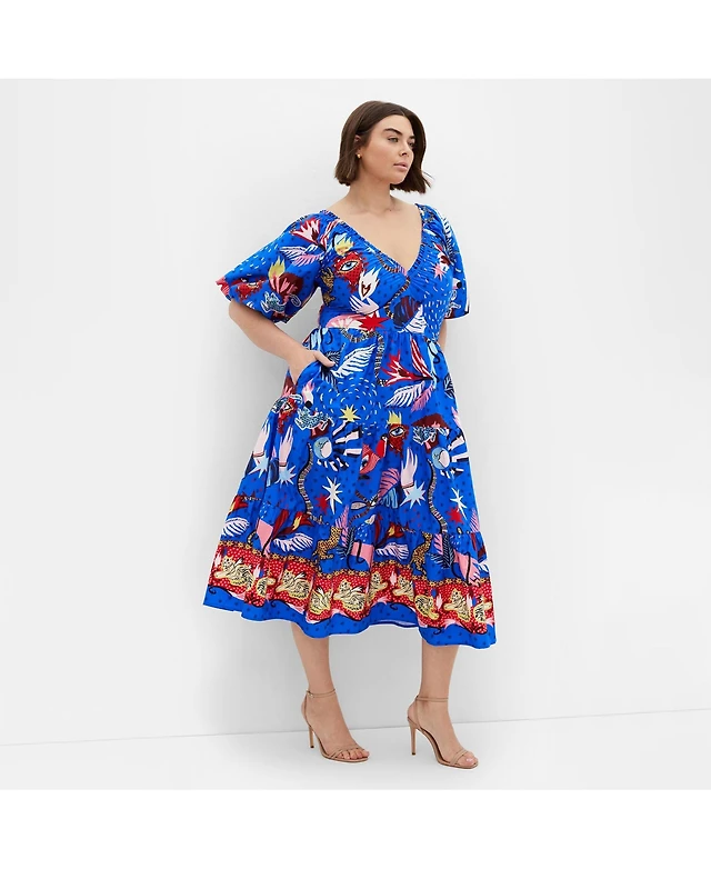 City Chic Women's Simona Print Puff Sleeve Dress