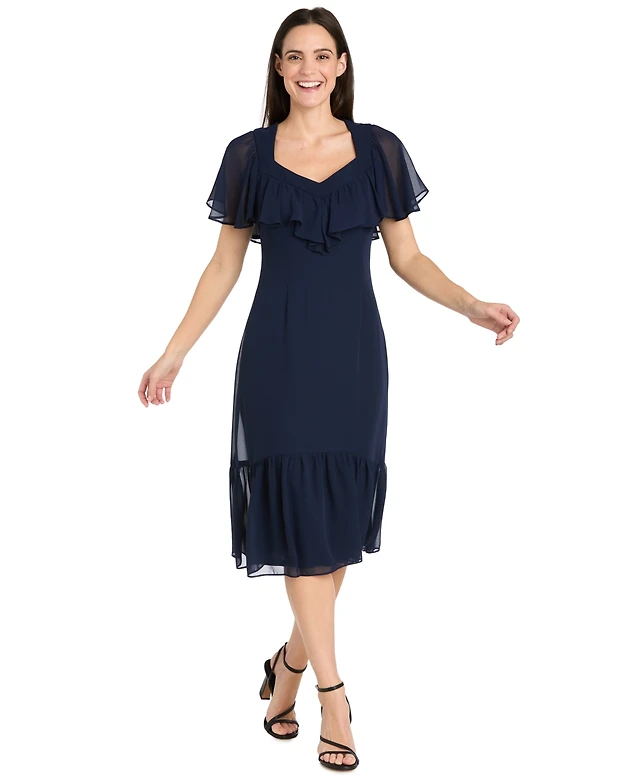 Modenaire Women's Cap Sleeve Fitted Bodice Midi Dress