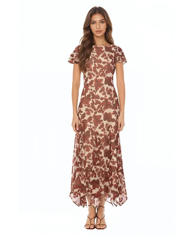 Mac Duggal Women's Short Sleeve Mesh Mirco Ruffle Midi Dress