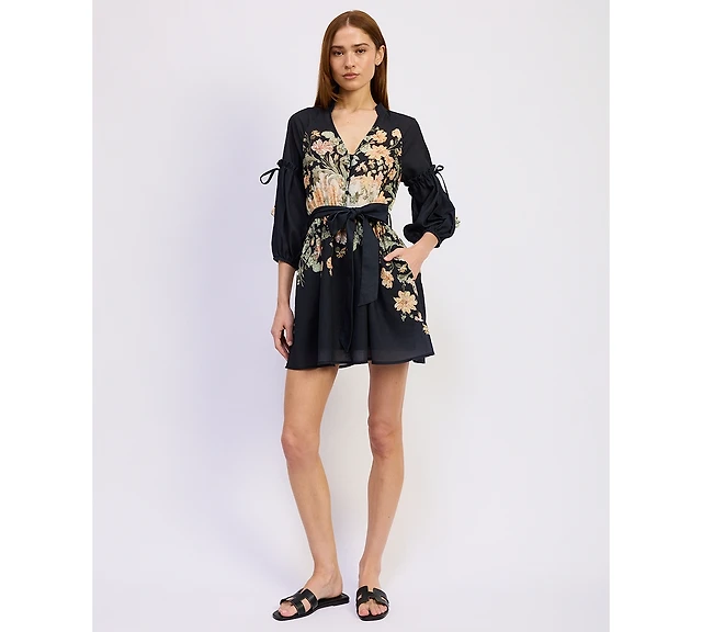 Astr the Label Women's Floral Sweetheart Neck Puff-Sleeve Dress