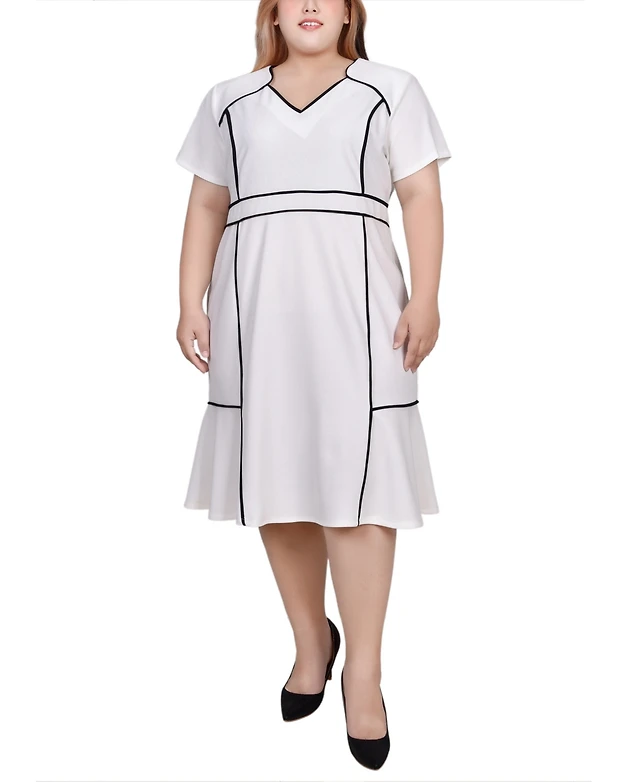 Msk Plus Printed Tie-Neck Short-Sleeve Dress