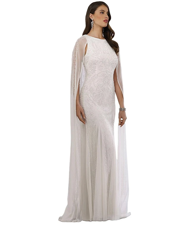 Xscape Women's Printed Asymmetrical Long-Sleeve Maxi Dress