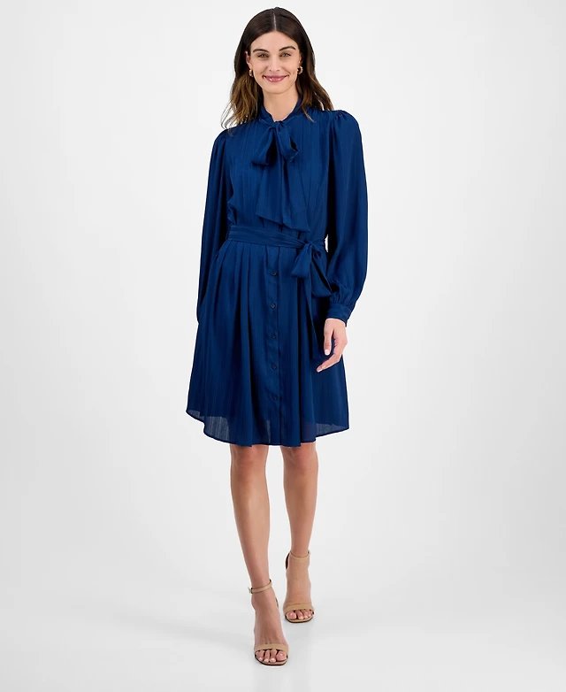 Robbie Bee Women's Spread-Collar Long-Sleeve Dress