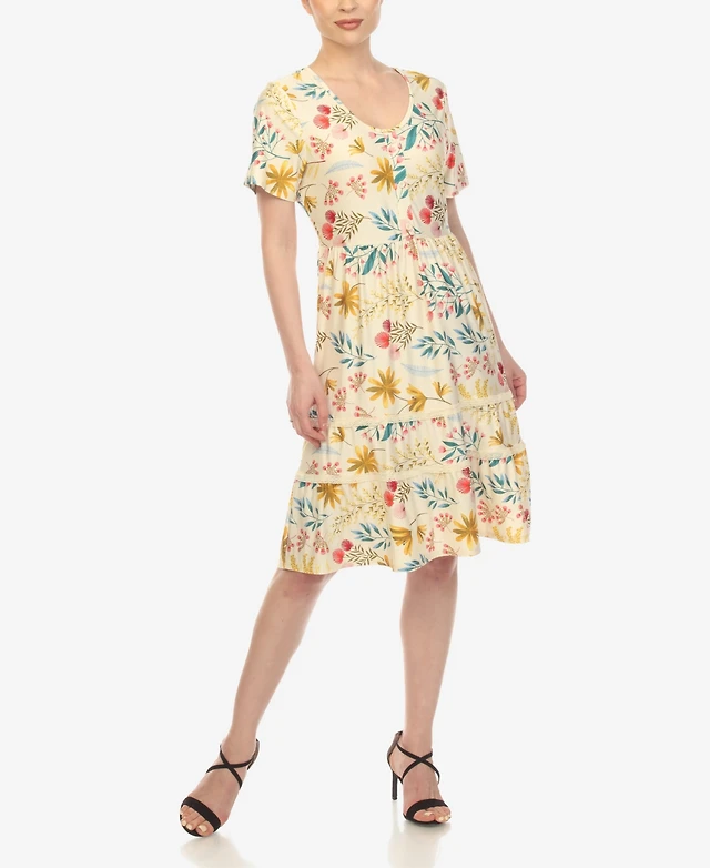 24seven Comfort Apparel Women's Abstract Short Sleeve Knee Length T-Shirt Dress