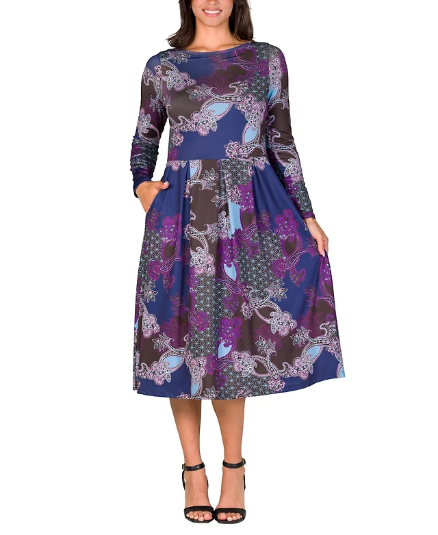 24seven Comfort Apparel Plus Size Elbow Sleeve Casual A Line Maxi Dress