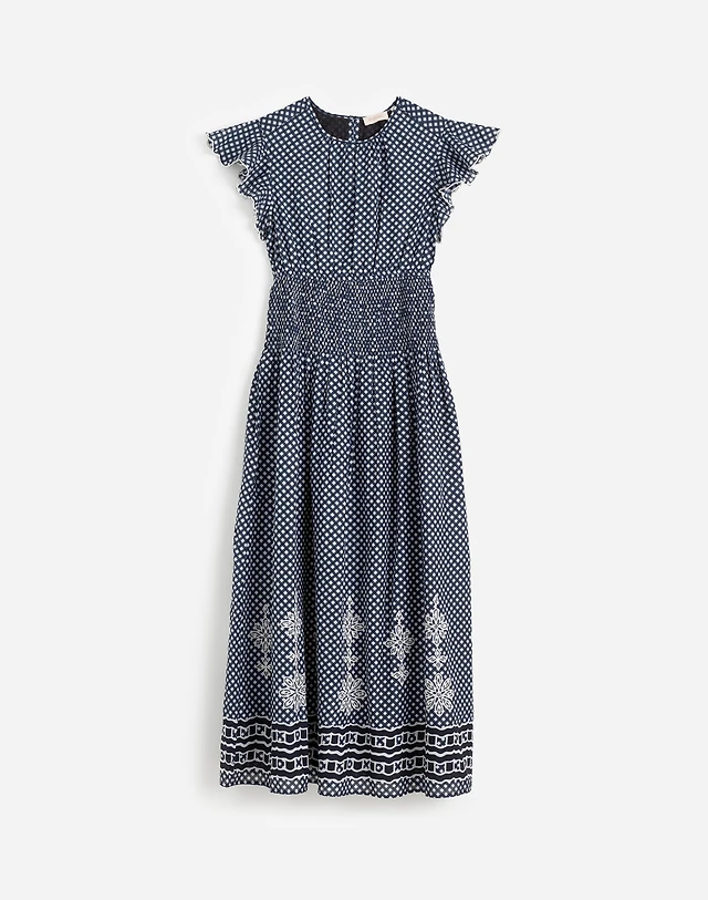 June + Vie Women's Cotton Voile Ruched Midi Dress