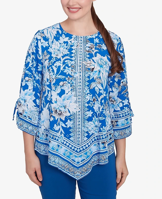Alfred Dunner Plus Classic Medallion Bordered Square Neck Top