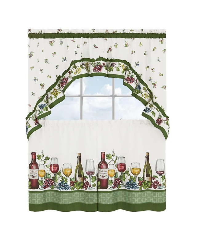 Kate Aurora 3 Piece Thanksgiving Autumn Harvest Pumpkins & Leaves Kitchen Curtain Tier & Valance Set