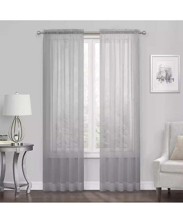 Kate Aurora 2 Piece Hamptons Coastal Living Textured Semi Sheer Rod Pocket Curtain Panels