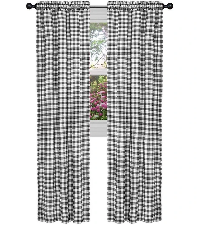 Kate Aurora Farmhouse Plaid Gingham Check Swag Valance Curtain Panel Pair - 72 in. W x 63 L