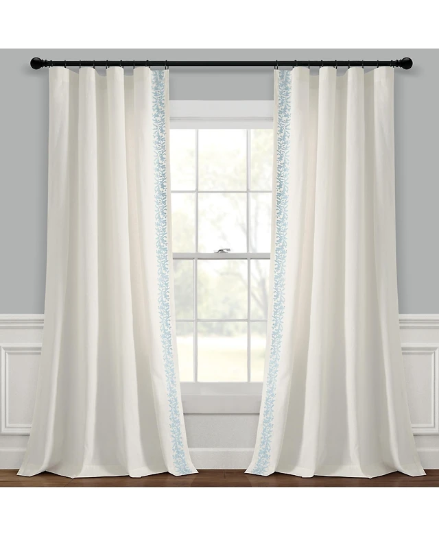 Delia Embroidered Floral Sheer Rod Pocket Curtain Panel