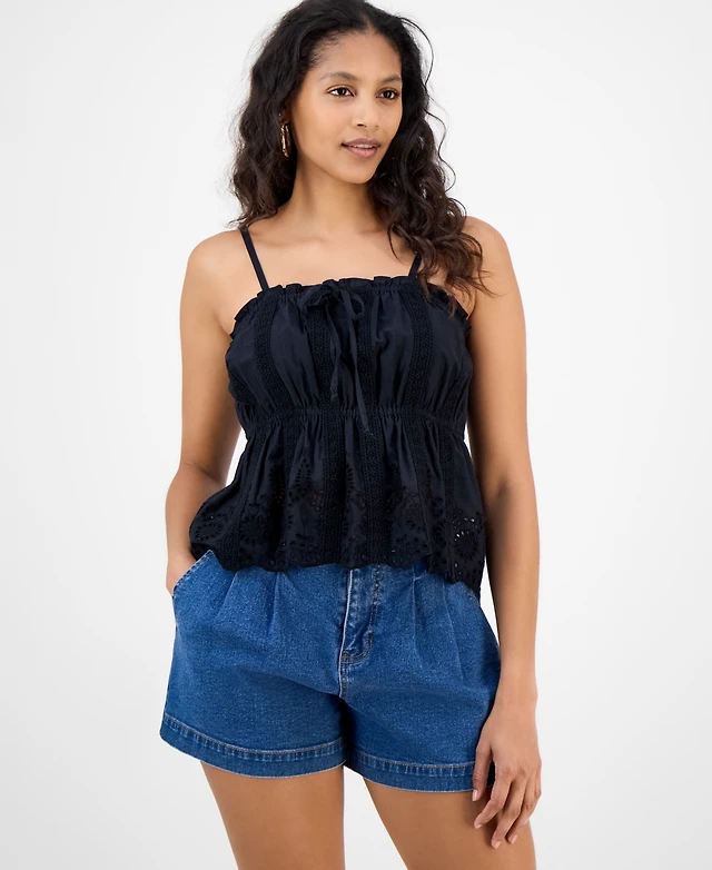 And Now This Women's V-Neck Ruffle-Trim Mesh Top, Exclusively at Macy's