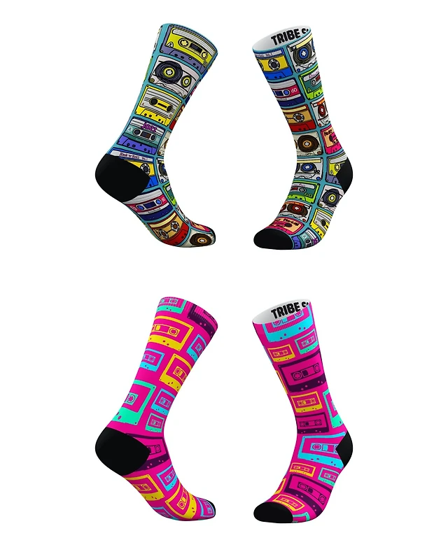 Men's and Women's Cassette Tape Socks, Set of 2