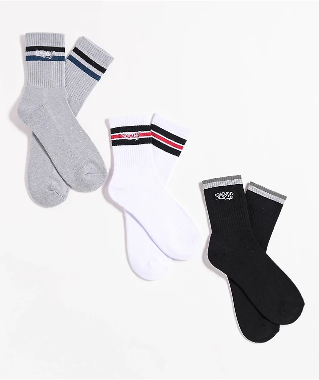 adidas Originals Tyshawn White, Light Grey Heather, & Black 3 Pack Ankle Socks