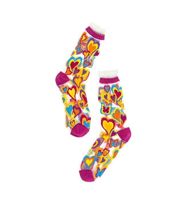 Sock Candy Women's Y2K Hearts Ruffle Sheer Sock