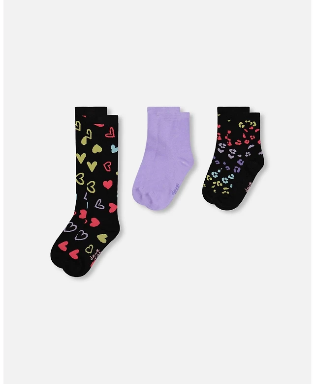 Deux par Girl 3-Pack Knit Socks Black and Multicolor - Toddler|Child