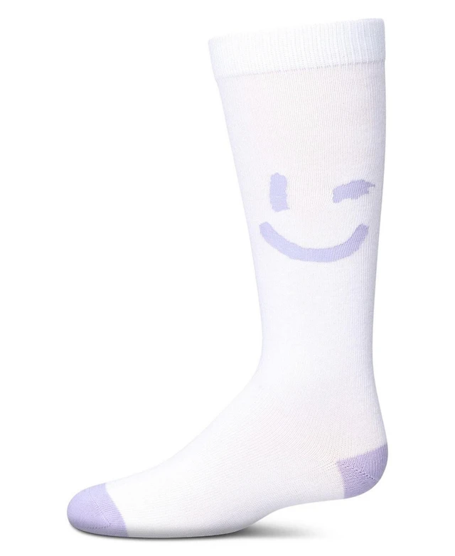 MeMoi Big Girls Air Brush Winking Smiley Cotton Blend Knee High Sock