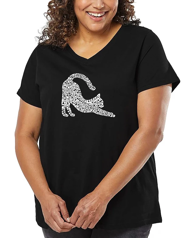 La Pop Art Plus Yin Yang Cat Word V-Neck T-Shirt