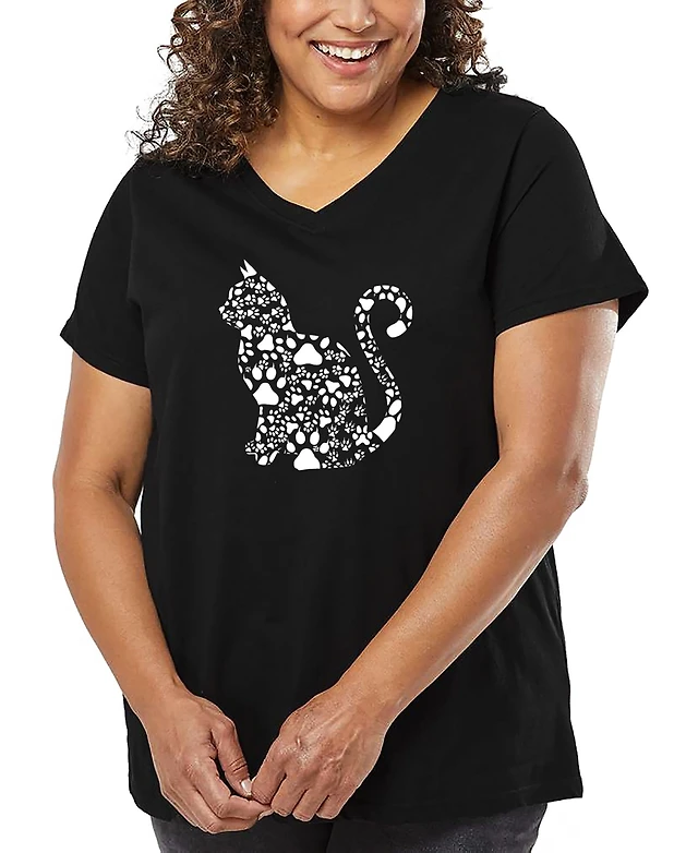 La Pop Art Plus Peace Love Cats Word V-Neck T-Shirt