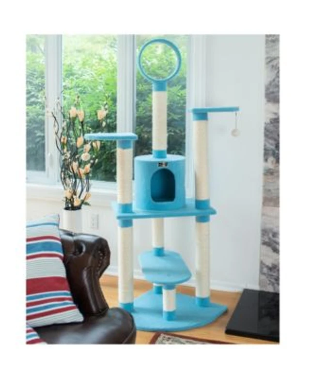 Armarkat B6605 65 Inch Classic Real Wood Cat Tree In Sky Blue With Five Levels Perch Hanging Tunnel Jackson Galaxy Approved