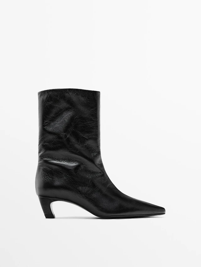 SPLIT LEATHER WIDE HEELED ANKLE BOOTS