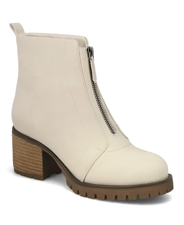 Journee Collection Women's Strap Round Toe Stacked Heel Dress Booties