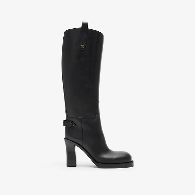 Leather Saddle High Boots in Loch - Women | Burberry® Official