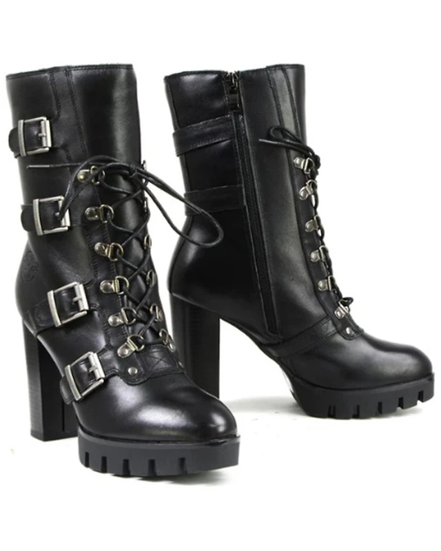 Milwaukee Leather Women's Buckle Platform Boots - Round Toe