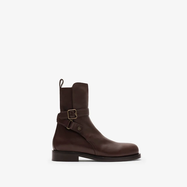 Check Leather Ledger Jodphur Boots in Truffle brown - Men | Burberry® Official