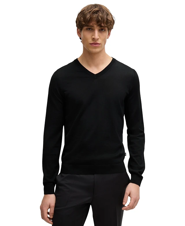 Boss by Hugo Men's Slim-Fit Merino Wool V-Neck Sweater