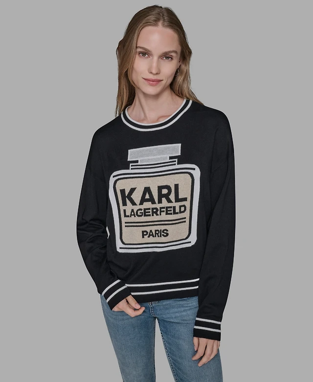 Karl Lagerfeld Paris Women's Crewneck Perfume Bottle Detail Striped Sweater