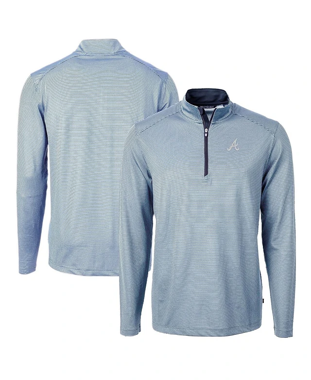 Cutter & Buck Men's Light Blue/Navy Atlanta Braves Virtue Pique Micro Stripe Quarter-Zip Pullover Top