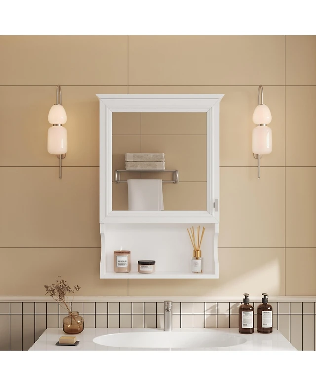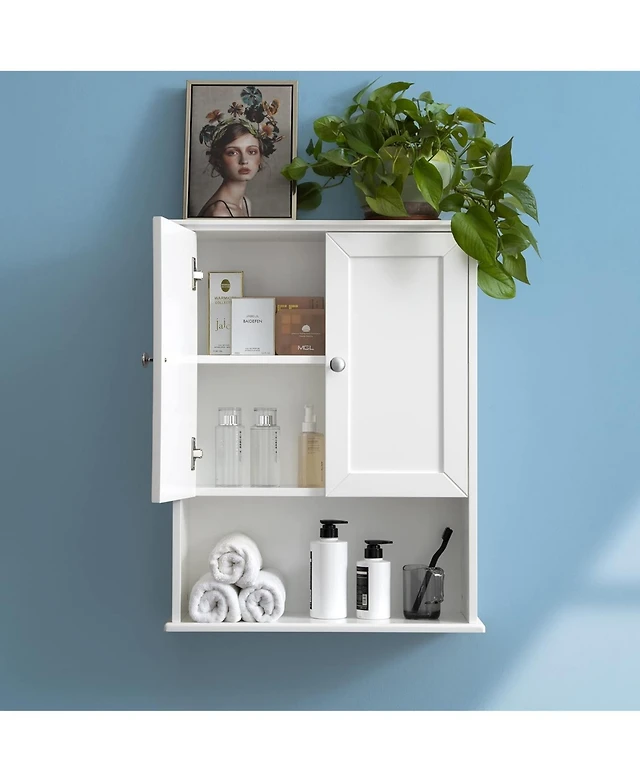Double Door Wall-Mounted Bathroom Mirror Cabinet with Storage Shelf
