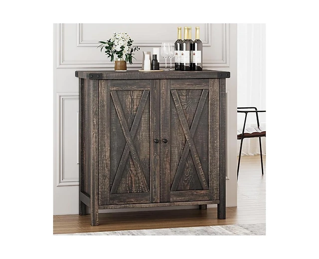 gaomon 47.2" Farmhouse Buffet Cabinet with Sliding Barn Door, 3 Drawers, Wine Rack & Adjustable Shelf