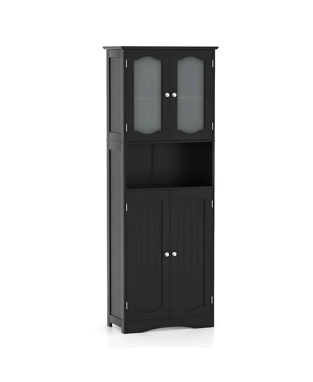 64.5" Tall Bathroom Cabinet with Tempered Glass Doors Adjustable Shelves