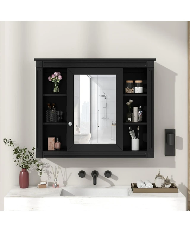 Casainc 32" Bathroom Wall Cabinet with Mirrored Door and 3 Storage Shelves, Wall Mounted Storage Cabinet