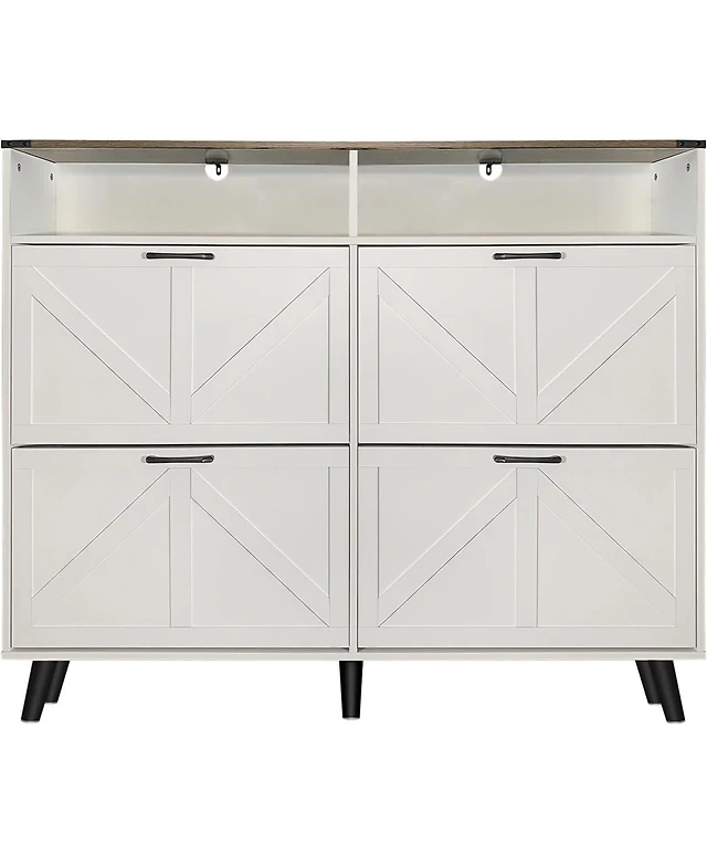 gaomon Farmhouse Freestanding Shoe Cabinet with Cushioned Bench and 4 Flip Drawers.