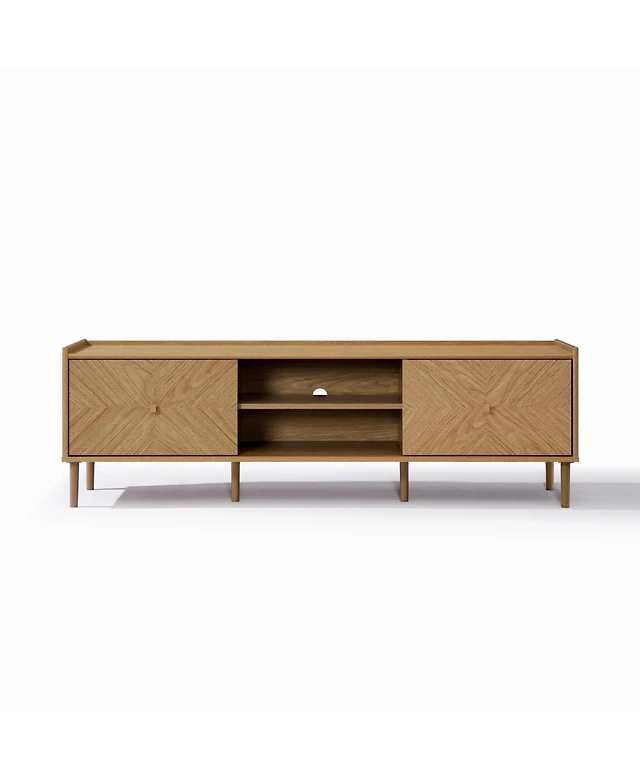 LuxenHome 2-Door Natural Oak Finish Manufactured Wood Cabinet, Pine Round Ball Legs