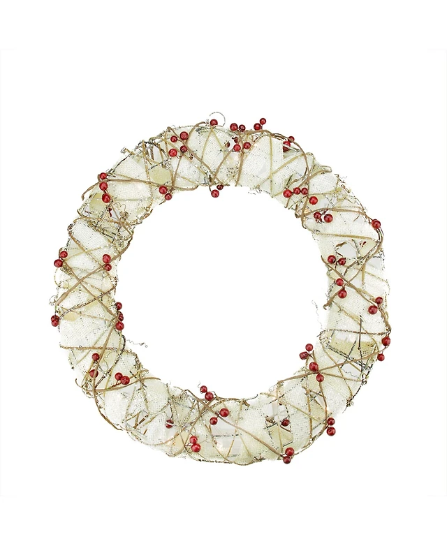 Northlight 18" Pre-Lit Burlap and Berry Rattan Artificial Christmas Wreath - Clear Lights