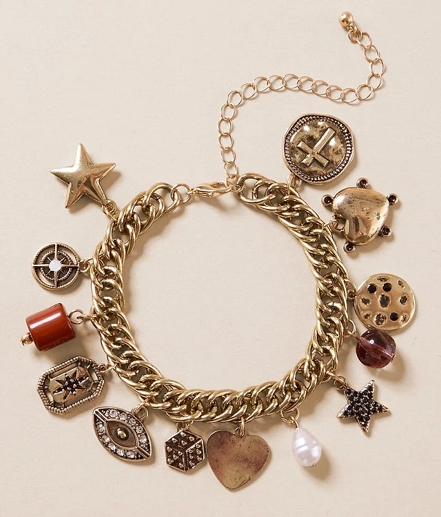 Hamsa Hand & Glass Evil Eye Charm Bracelet in 10k Gold