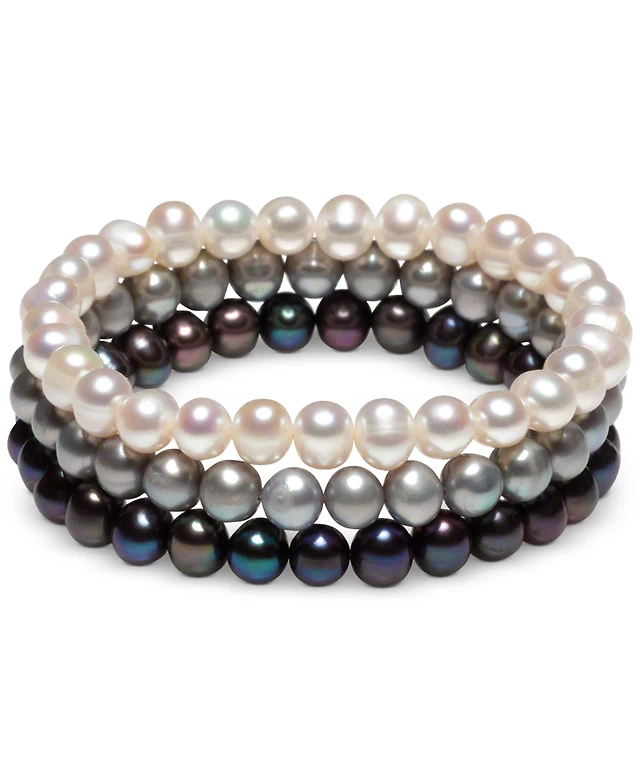 3-Pc. Set White Cultured Freshwater Pearl (6-1/2 mm) Stretch Bracelets (Also White/Gray/Peacock & White/Pink Gray)
