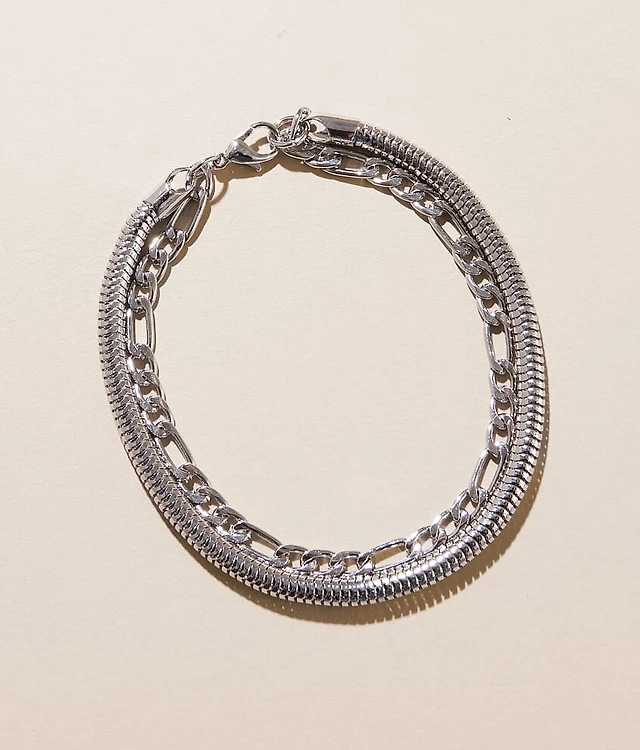 Men's Polished Figaro Link Chain Bracelet in Sterling Silver