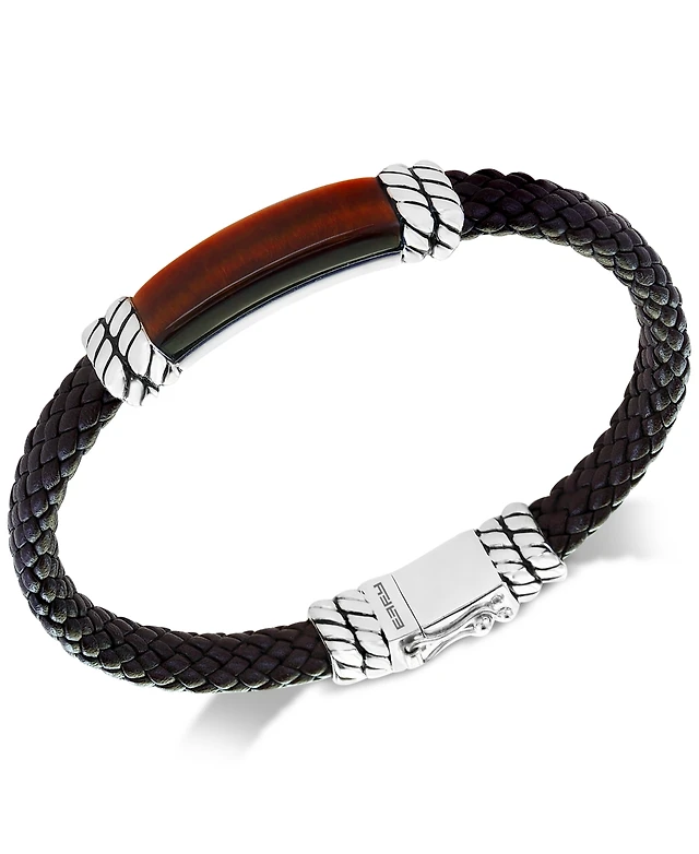 Effy Men's Tiger's Eye Brown Leather Bracelet in Sterling Silver