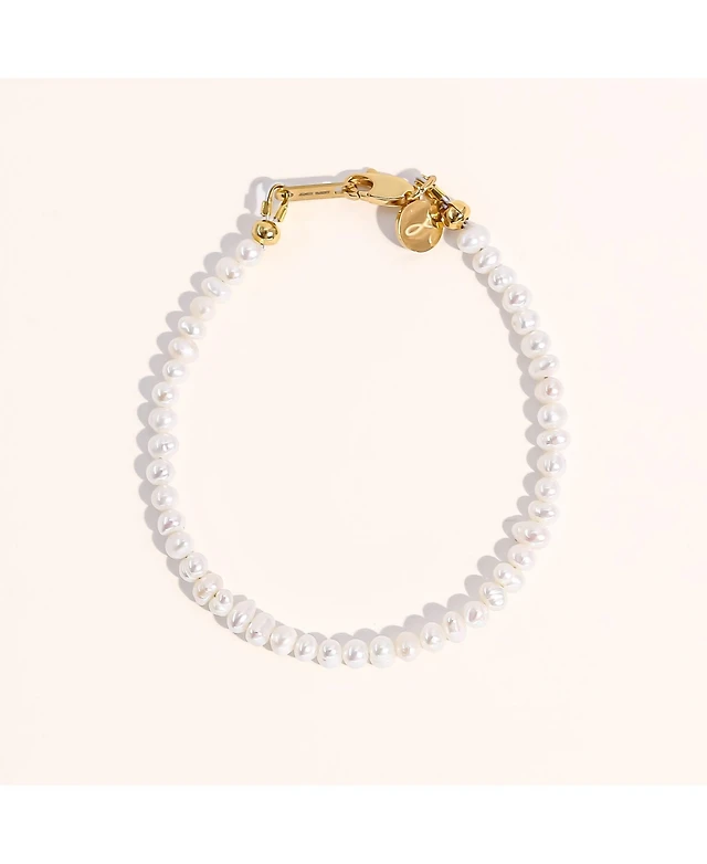 Genevive Sterling Silver 14K Gold Plated Beaded Bangle Bracelet with Shell Pearls